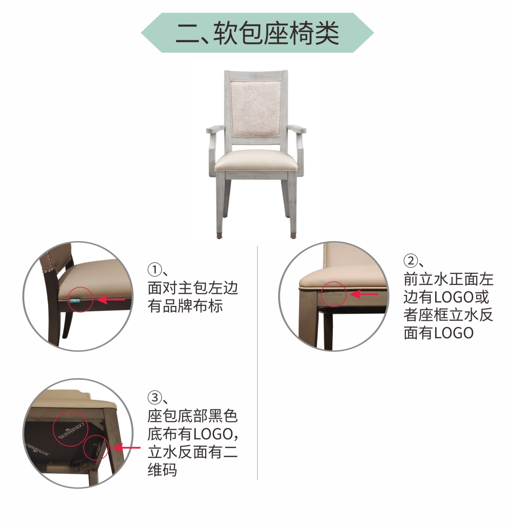 (1)产品扶手处有品牌布标;